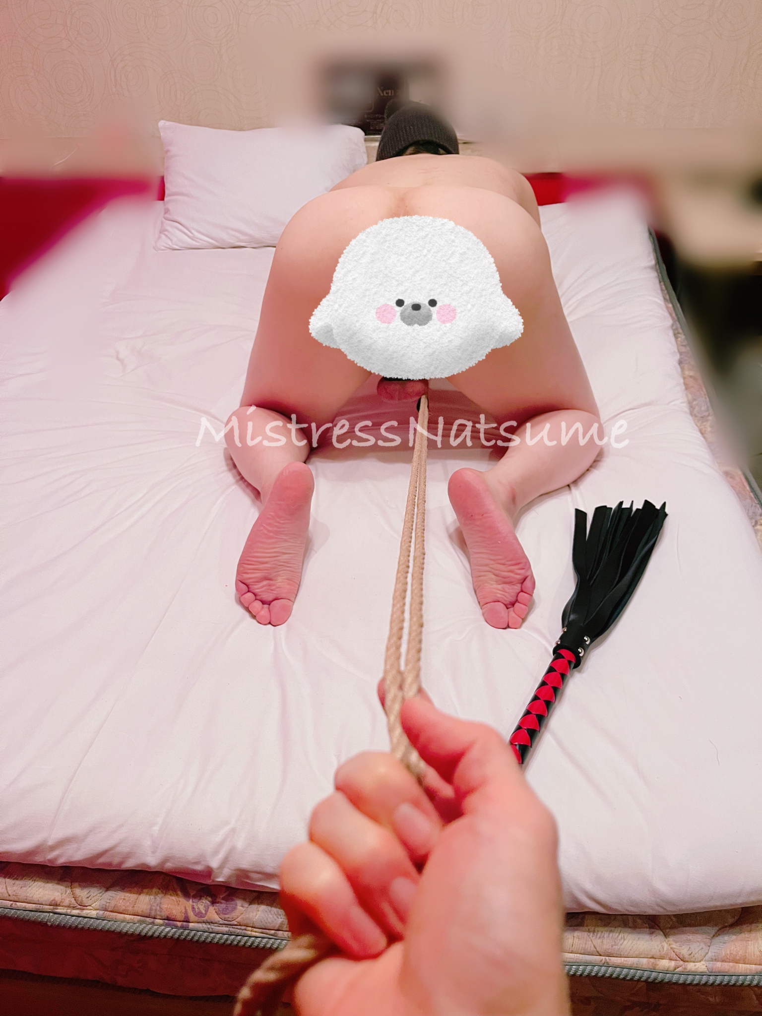 そして白豚を罵倒しながら、バラ鞭で叩きまくります。